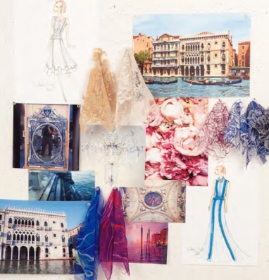 ベニスの街からインスパイアされたカラーパレットは、フロステッドジェイド、ピンクシャドウ、ブルーストーンといった半透明のレイヤーを重ねたパステルカラー、ベニスのラグーンのような明るいウルトラマリンブルーはアイボリーやネイビーと組み合わせています。