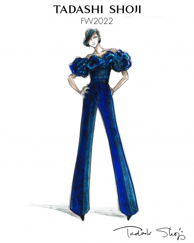 輝きを纏ったピンストライプのベルベットドレスやジャカードのスーツはマニッシュに。