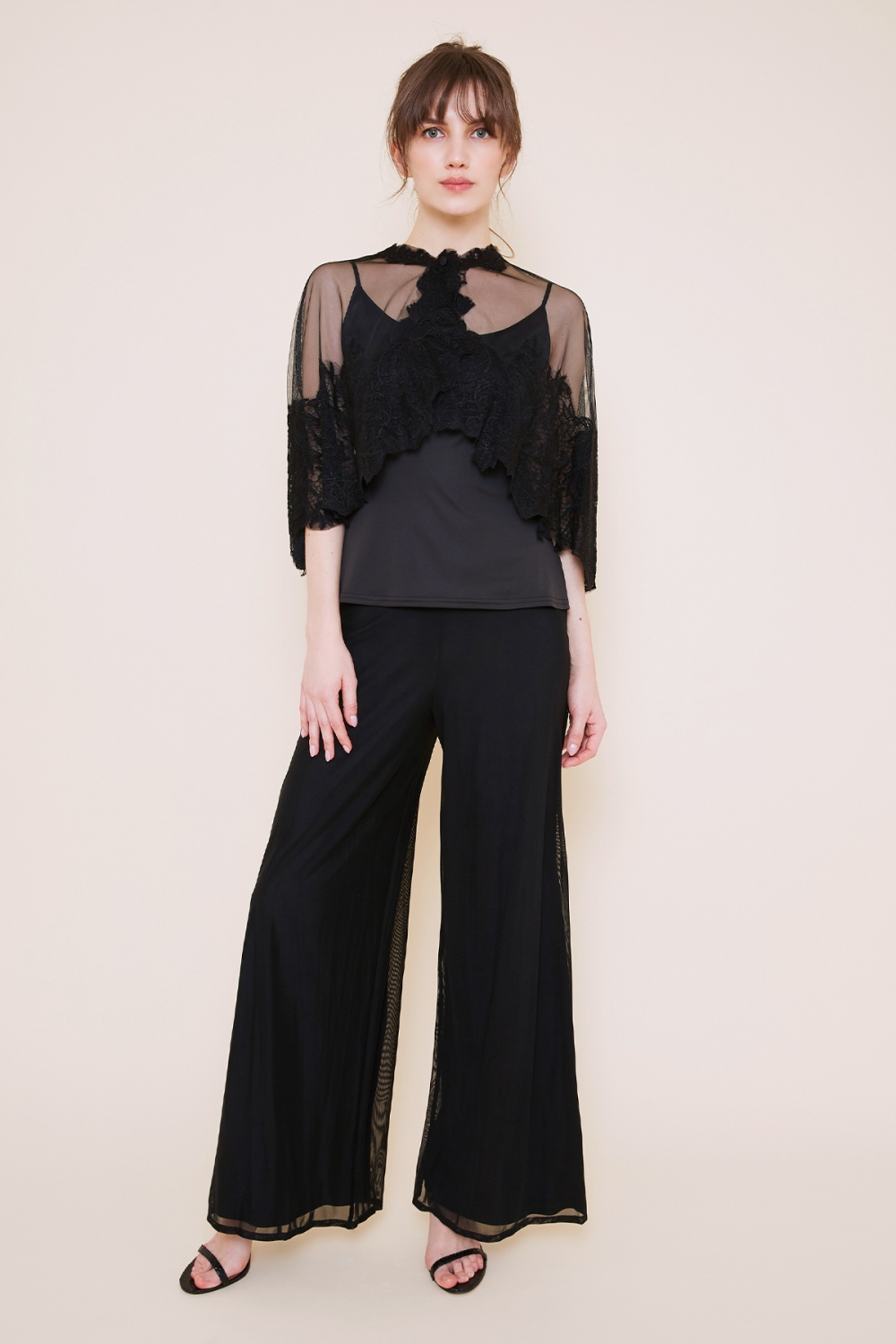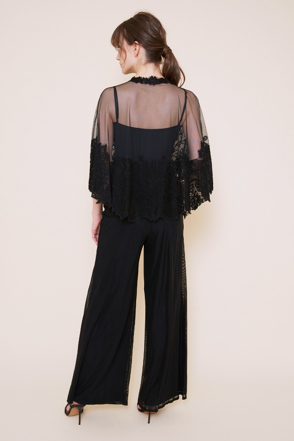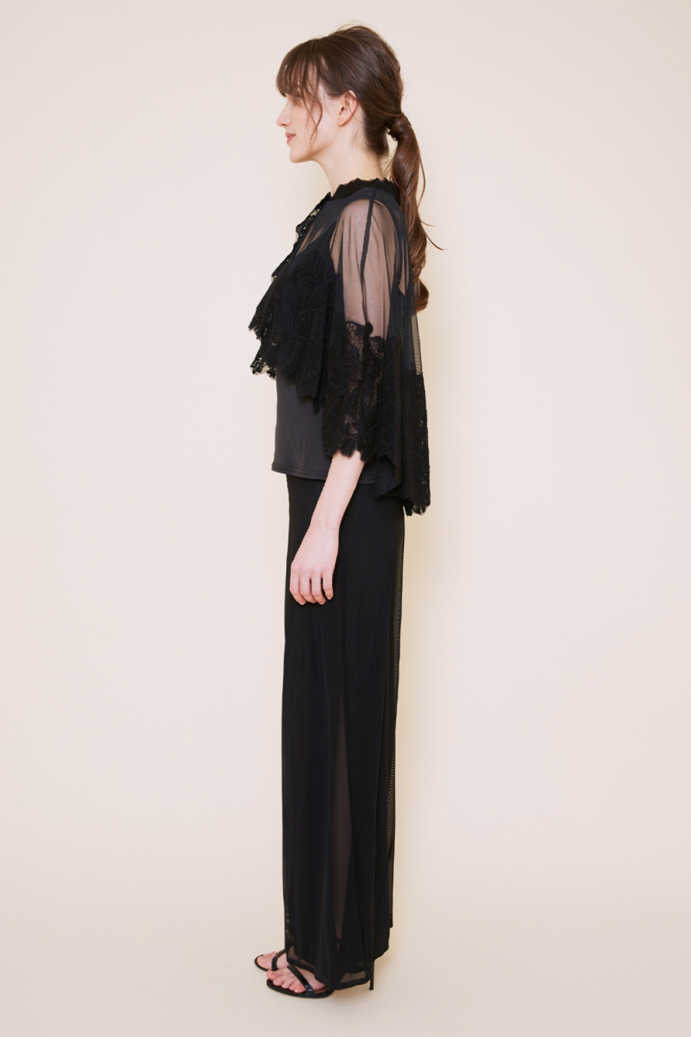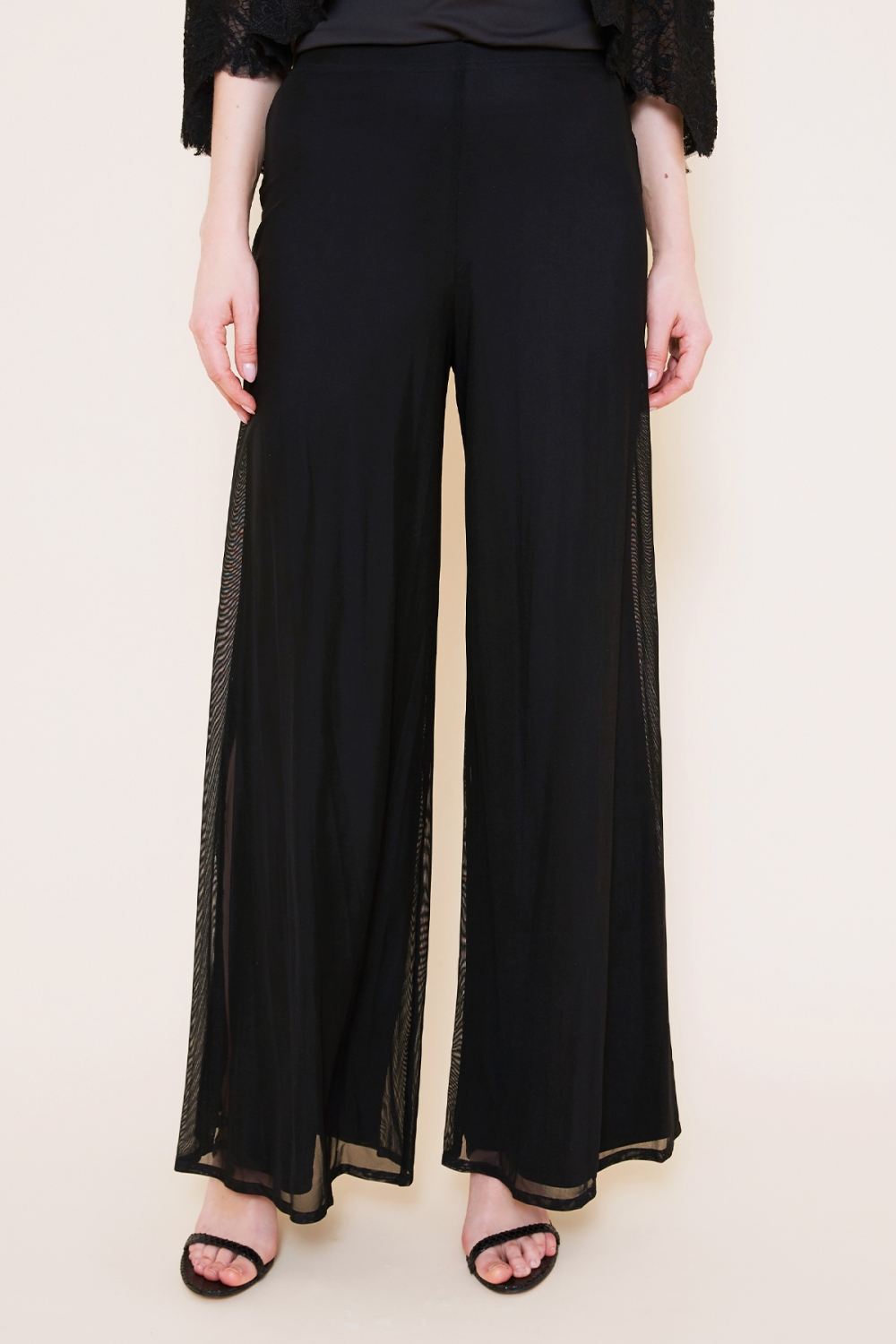 着心地の良い柔らかなTADASHI SHOJIの代表的なジャージー生地の上にチュール生地を重ねたパンツです。