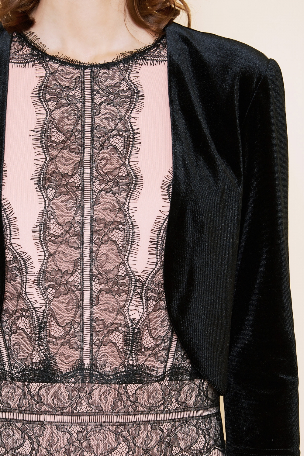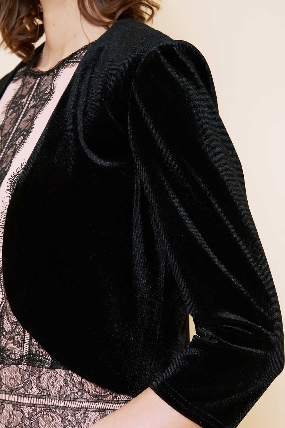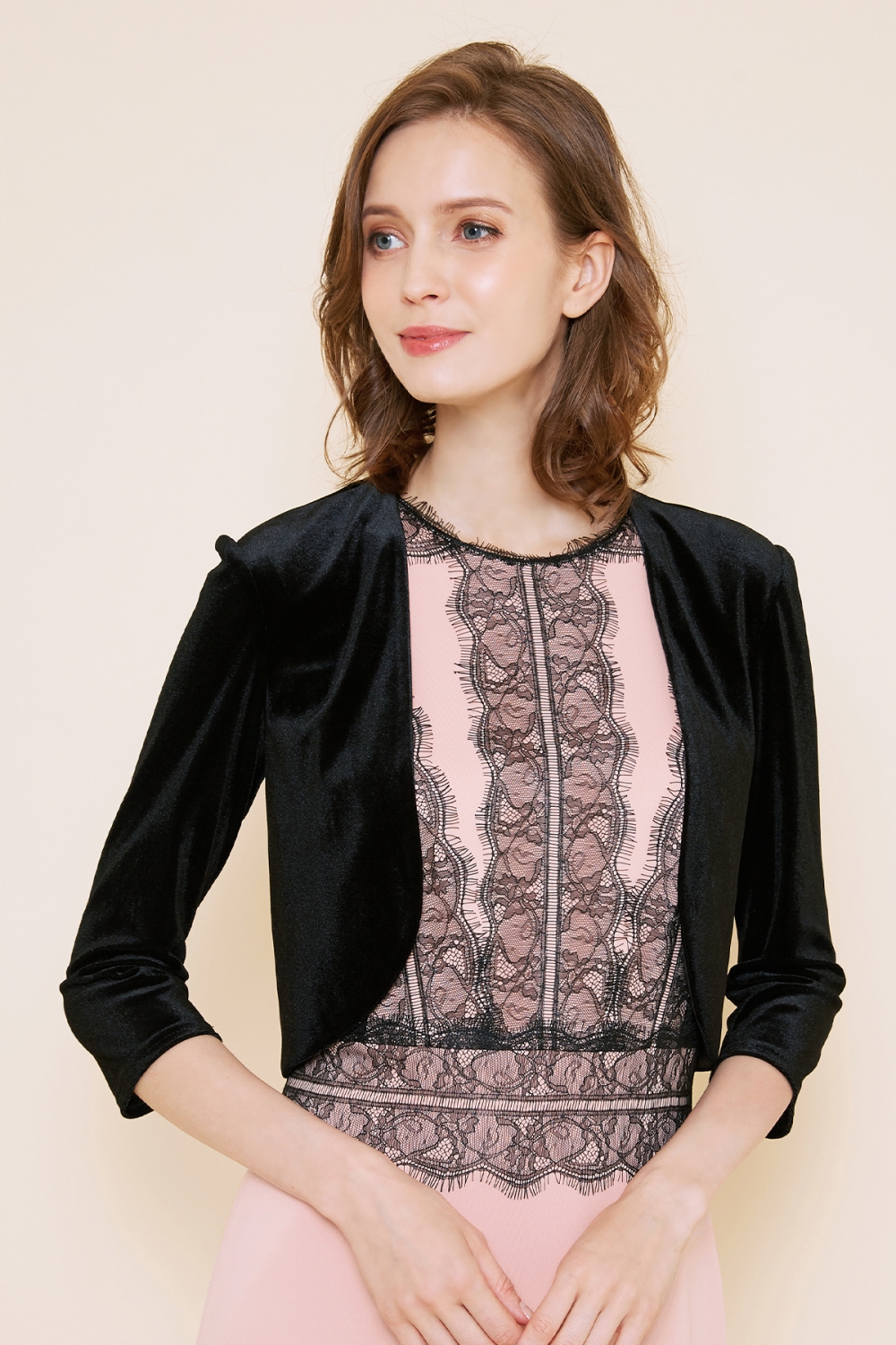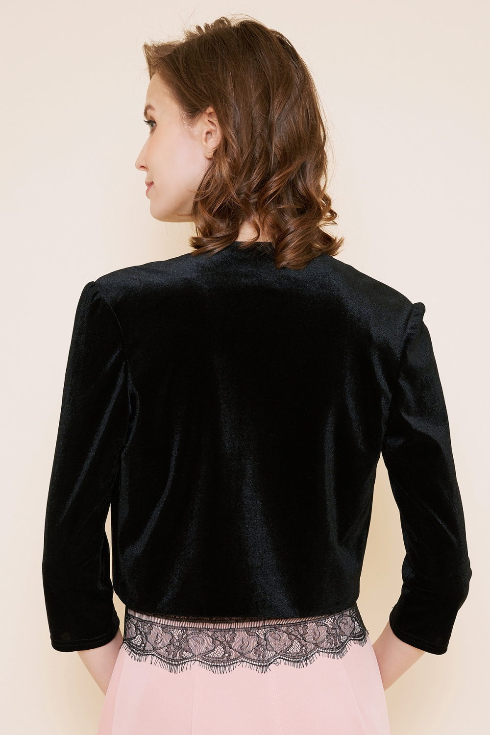柔らかくフィット感の良いベロアのボレロは、シックな印象を与えてくれます。