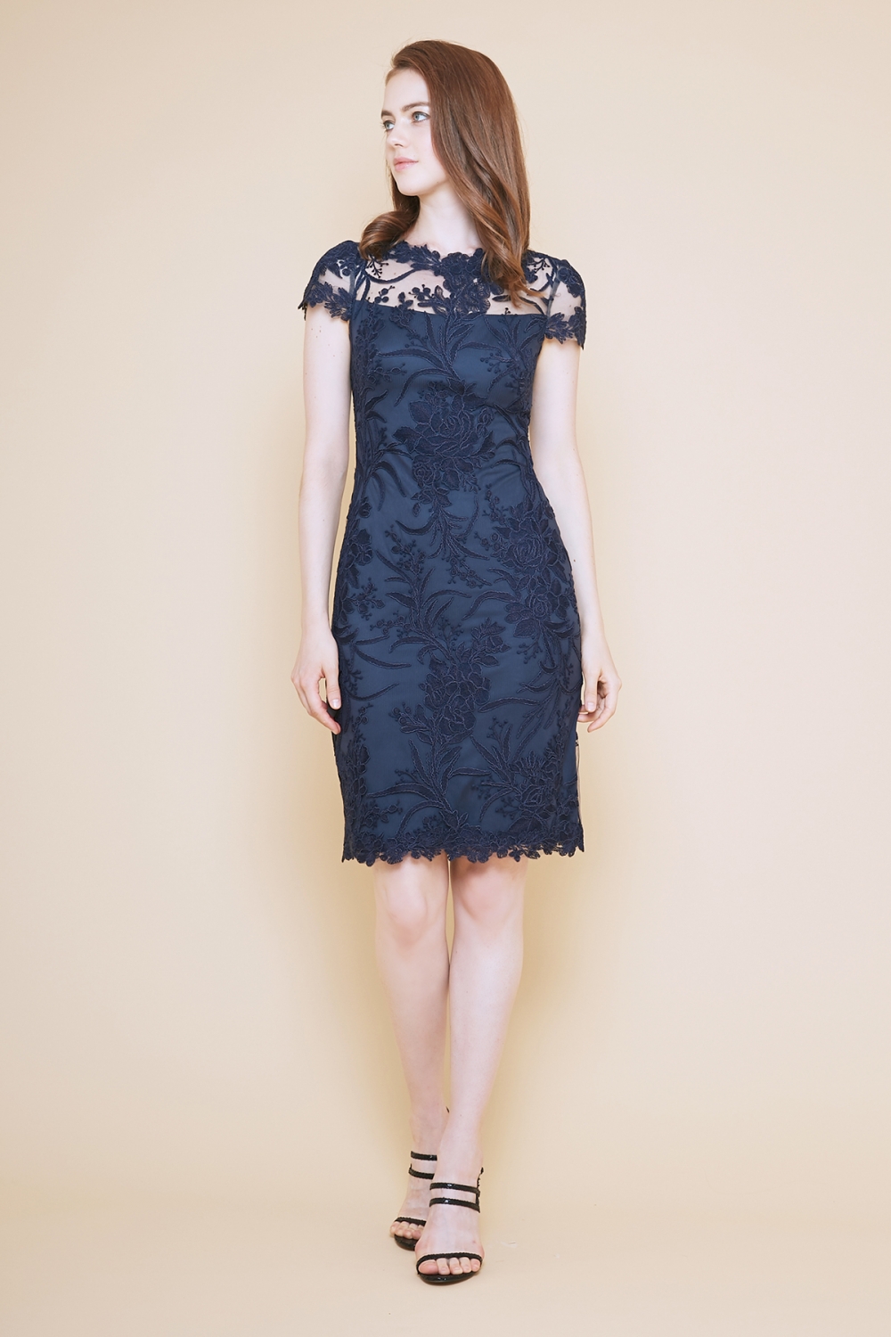 草花や果実をモチーフにした高級感のあるコードレースを使用したドレス。 動きのある丸い果実や細長い葉などがシンプルなドレスに映え、透け感のあるデコルテにレースが浮かび上がります。 ベーシックなカラーで程よくセンシュアルなドレスは、ちょっとおしゃれしたいお出かけの時にピッタリです。 華やかなアクセサリーを合わせて、パーティーにも。 モデルサイズ 身長175cm B:84cm W:60cm H:89cm /サイズ2着用 ■新作商品一覧はこちら■ □ミディアムドレス一覧はこちら□ ■デイリードレス一覧はこちら■ □同じレースの商品一覧はこちら□ ■ネイビーの商品一覧はこちら■