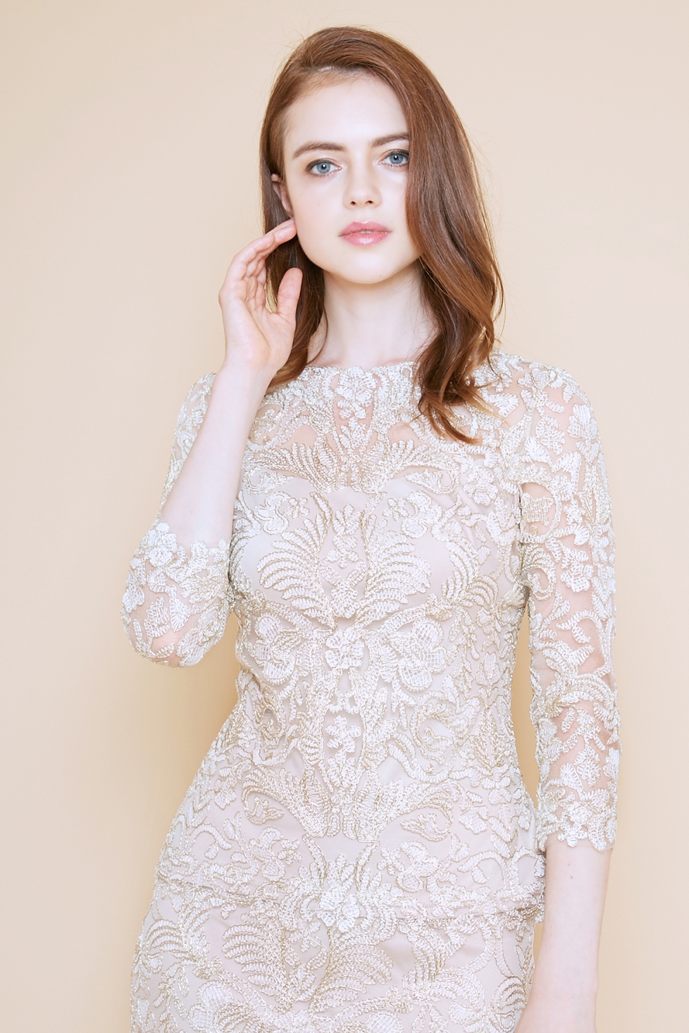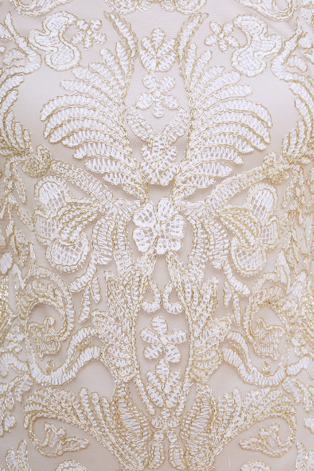 ゴールドの糸を使用したレースが華やかなこのカラーは、結婚式やパーティーなどのオケージョンにオススメです。