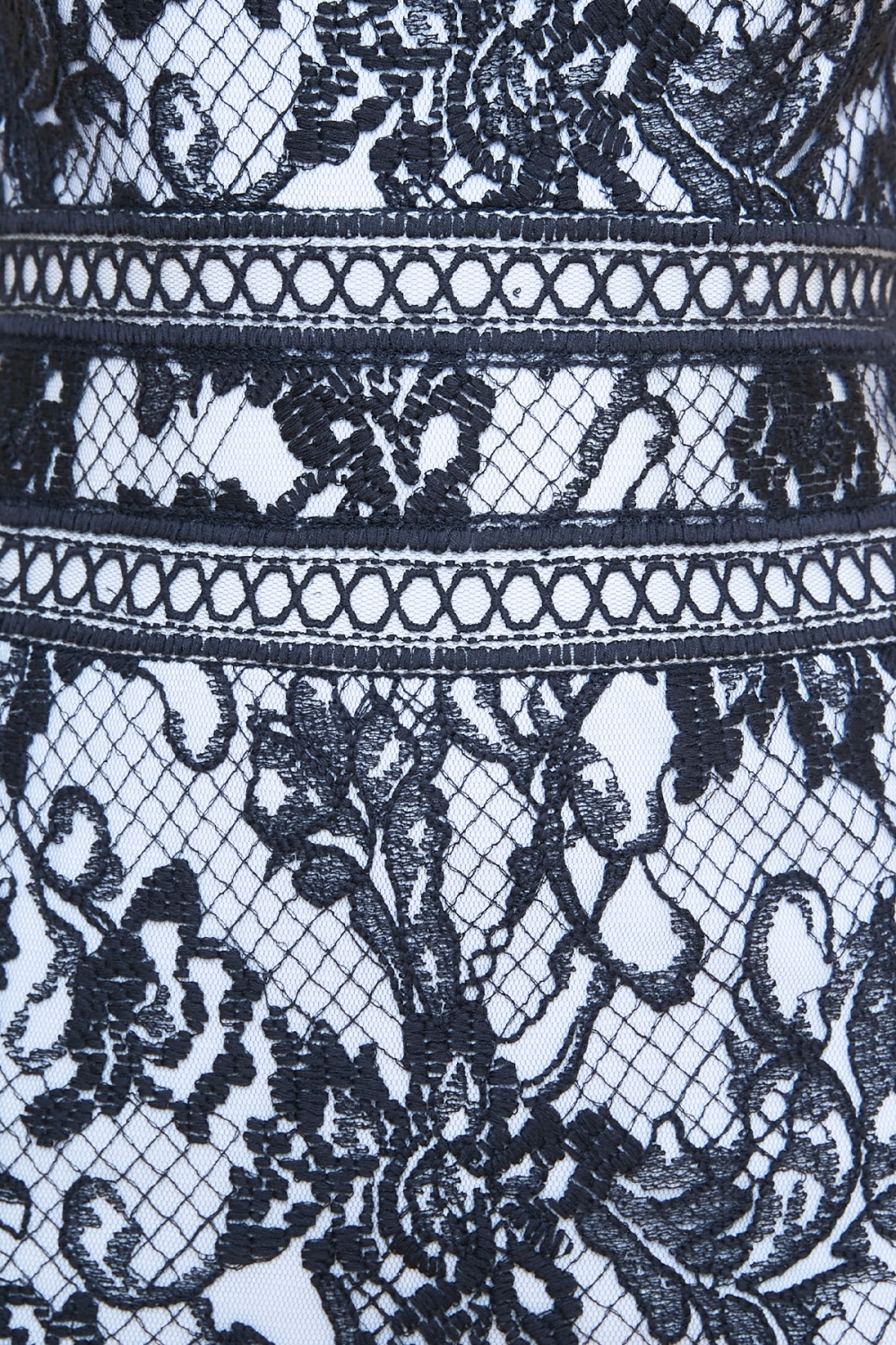チュールに刺繍を施したレースは、モチーフごとに使用する糸の太さを変えることで色の濃淡が生まれ、また、太めの糸を使用している部分はモコモコとした独特な凹凸があり、ニットのような風合いがあります。 シンプルなドレスに合わせたはしごレースのラインがポイントです。 裏地にアイボリーを合わせたこちらのカラーは、爽やかで凛とした印象を与えてくれます。 モデルサイズ 身長175cm B:84cm W:60cm H:89cm /サイズ2着用 ■新作商品一覧はこちら■ □ミディアムドレス一覧はこちら□ ■デイリードレス一覧はこちら■ □色違い商品一覧はこちら□ ■ネイビーの商品一覧はこちら■ □アイボリーの商品一覧はこちら□