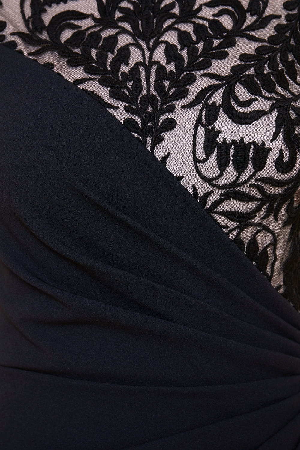 可憐なスズランをモチーフにしたレースと、ストレッチクレープ生地を組み合わせたドレス。 ストレッチクレープ生地がボディにフィットしたながらも、ウエストに向かって斜めに寄せたドレープがお腹回りや腰回りをカバーし、ボディラインを美しく見せてくれるデザインです。 モデルサイズ 身長171cm B:82cm W:57cm H:89cm /サイズ2着用 ■新作商品一覧はこちら■ □ミディアムドレス一覧はこちら□ ■デイリードレス一覧はこちら■ □同じレースの商品一覧はこちら□ ■ブラックの商品一覧はこちら■