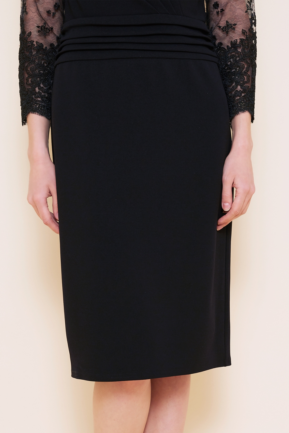 タイトになりすぎないスカート、クレープジャージー生地との組み合わせで少しラフな雰囲気も加わり、パーティーからお食事会まで幅広く対応可能なデザインです。