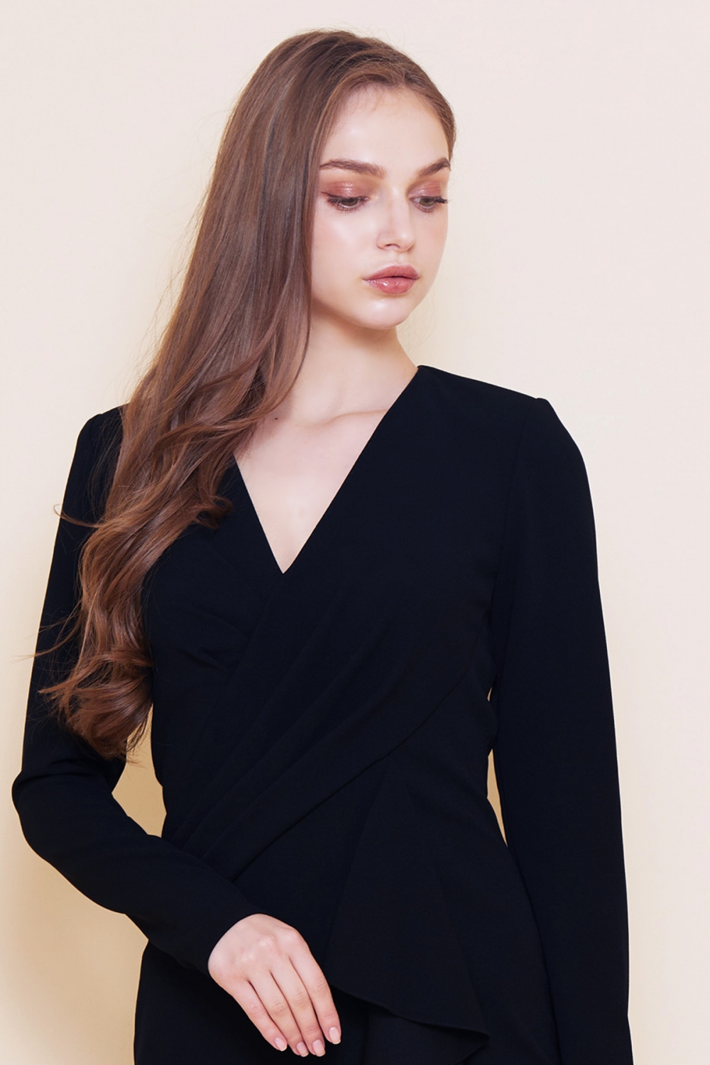 着心地の良いクレープジャージーのミモレ丈ドレス。ウェスト部分に入れられたドレープはウェストを細く見せる効果があり、流れるようにウェストからスカート部分に配置されたラッフルは、縦のラインを強調し、スタイルアップが叶います。オフィスにも、ランチやディナーそして結婚式やパーティーなど合わせるアクセサリーやバッグを変えれば、様々なオケージョンでご着用いただけます。 モデルサイズ 身長168cm B:82cm W:60cm H:88cm /サイズ0着用 ■新作商品一覧はこちら■ □ミディアムドレス一覧はこちら□ ■デイリードレス一覧はこちら■ □ブラックの商品一覧はこちら□