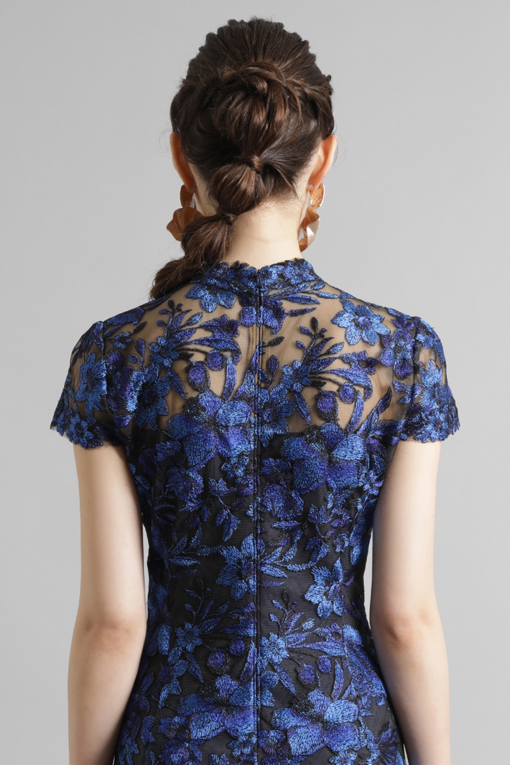 光沢のある美しいフラワーレースが印象的なドレス。ハイネックのデザインが上品な印象を与え、キャップスリーブとハンカチーフヘムが女性らしい華やかさをプラスします。総レース仕立で、エレガントで優美な雰囲気を漂わせます。一目見ただけで心を奪われるような魅力的なドレスは、特別な場に相応しい一着です。 モデルサイズ 身長170cm B:82cm W:58cm H:87cm /サイズ0着用 ■新作商品一覧はこちら■ □ミディアムドレス一覧はこちら□ ■ネイビーの商品一覧はこちら■